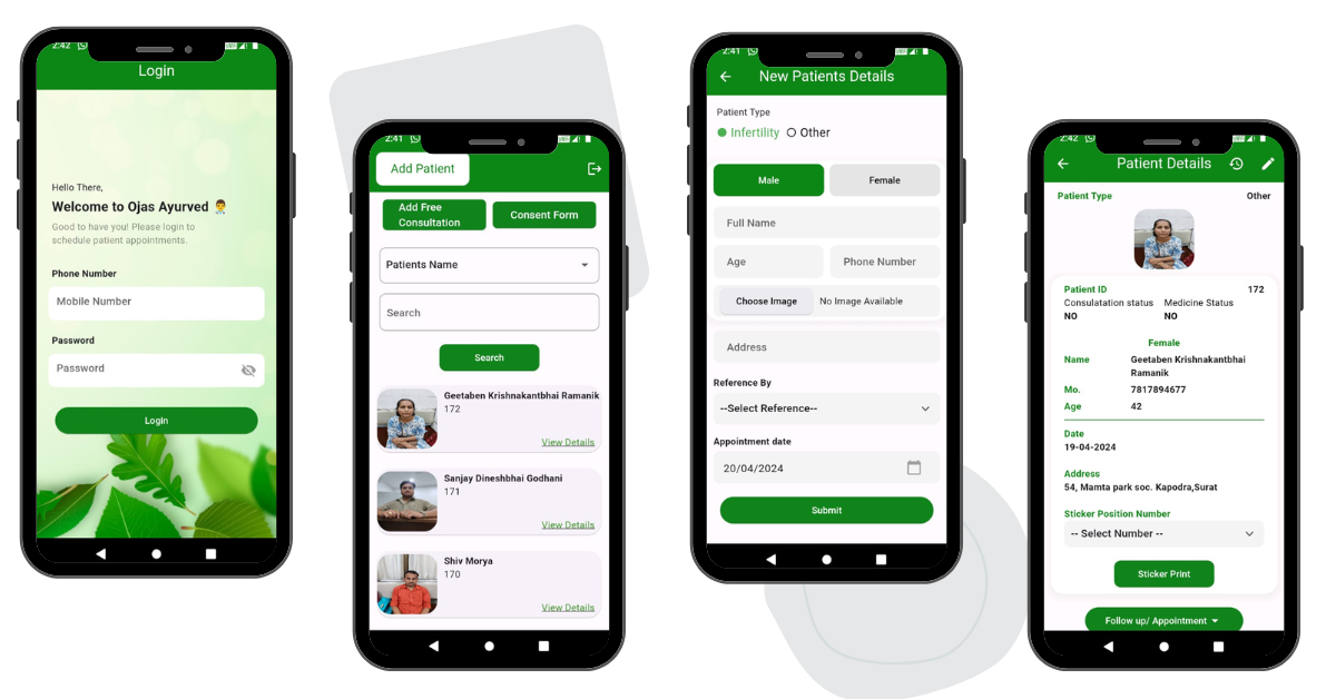 we had developed application for dr ojash employee. this application developed for multiple recpetion list , employee can login this application and book a appointment for his customer , employee can also take a collection by online or cash. employee can check a customer information its a first time or second time . there are also one module include for free conceltation.