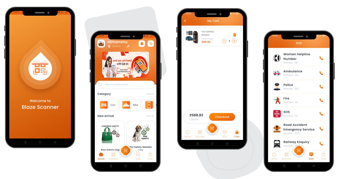 blazescanner is provide a emergency contact detail . if any one user forgot bag or accsident case ,No parking area , dog etc then user open phone camera of mobile application scan our qr code and call or message to particular owner of item ..