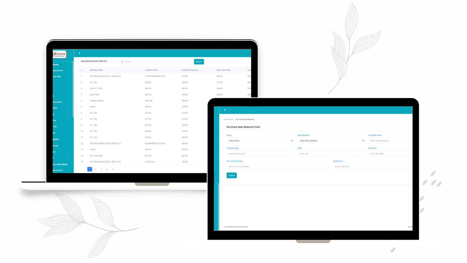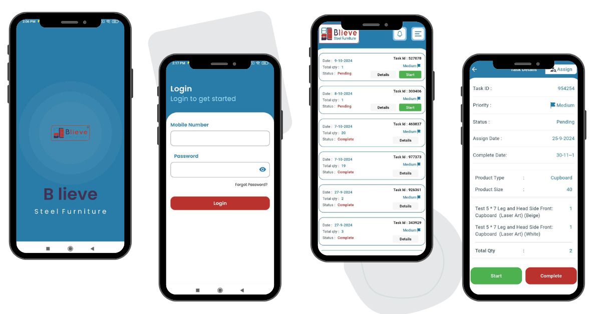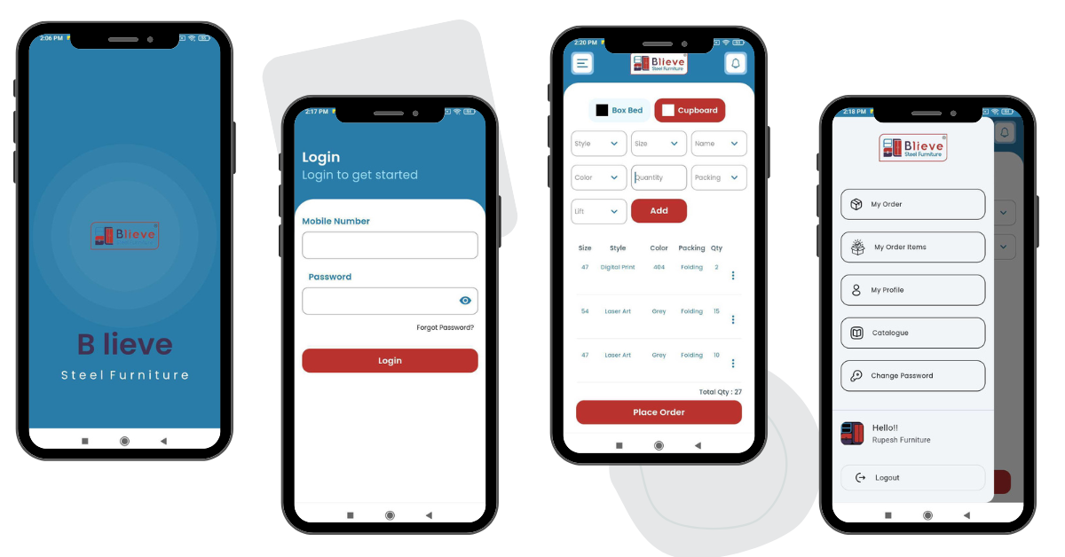 this software is developed for a blieve company . blieve is a cupboard and bed manufacturing company . bLieve Steel Furniture is Established in 2007. we had developed production management , Stock management , order management, Row material management software and mobile application for blieve industry . before developed software blieve industry writen all data in note book right now its a fully automation work .