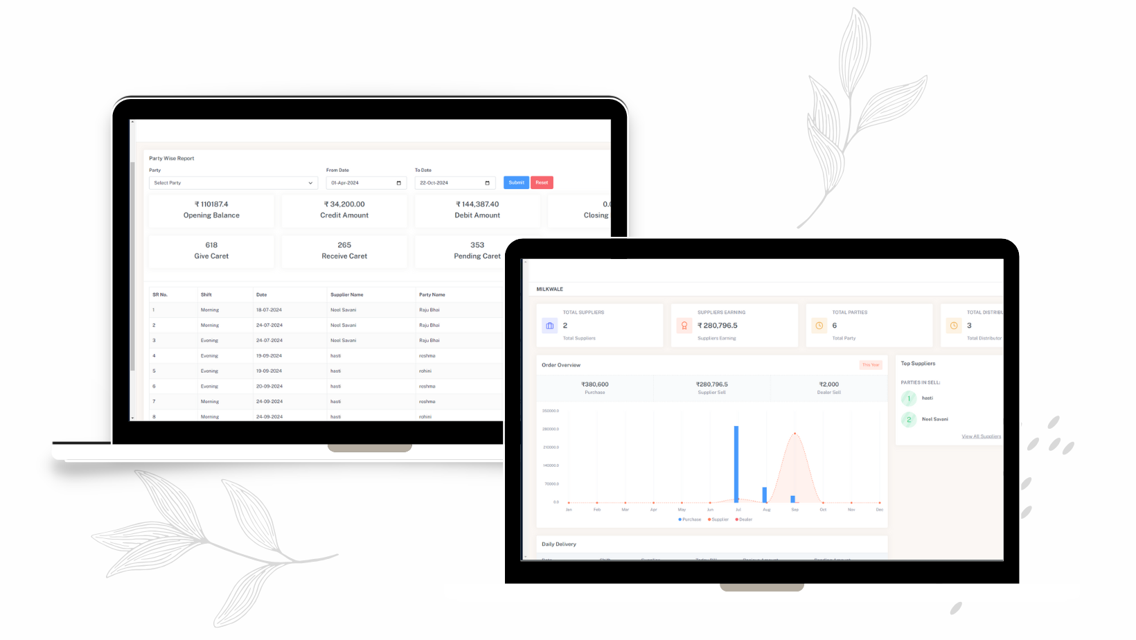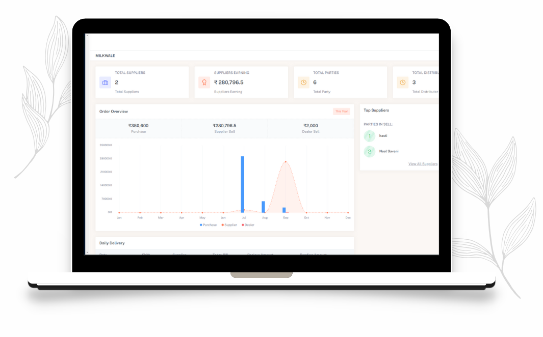 milkwale software and application is developed for dealer and milk supplier . there are delaer can manage daily sale and purchase . how many payment is given to supplier and how many payment is recive from shop . dealer can see partywise payment history , supplier wise payment history everything from web panel.+